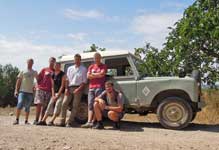 Další den nás Ondra všechny i s jeho synem Hugem a kánětem naložil do auta a jelo se na výlet do stájí Hipica Can Raphael, kde má svého koně. Byl to největší kůň co tam měli. Chtěl, abychom se projeli, ale nenašli jsme odvahu. Není se čemu divit, vždyť nemá brzdy. Také tam bylo divoké prase schované pod obrovským kaktusem. Říkali mu Baicon a po chvíli si nás přišel i očuchat. Sežral vše co jsme mu dali a vypadalo to, že sežere i nás. Na kaktusu rostly nějaké plody. Údajně jsou hodně osvěžující, ale kvůli malinkatých ostnů je nikdo nechtěl. Pak nám Ondra ukázal svou chovnou stanici se sokoly, o které se stará. Chová dokonce i vzácné bílé sokoly. Mladé prodává většinou do Dubaie. Po občerstvení jsme si vzali své motorky a jeli na místní pláž hned vedle letiště. Letadla, které z letiště v Barceloně startují, vzlétaly každé 3 minuty. Okoupali jsme se ve vlnách, pinkli si s míčem a jeli do města Salomó asi 100 km na jih. Projeli jsme mnoho olivových sadů až do malého, útulného městečka s úzkými uličkami. Ze všech stran je cítit přátelská atmosféra. Všichni jsme se konečně osprchovali u našeho kamaráda Petra, který nás královsky pohostil. Někteří z nás šli spát až při ranním rozbřesku. Musím potvrdit, že ovoci se ve Španělsku daří a když ho tam přijede Čech nechat zkvasit a vypálit, je to asi nejlepší kombinace.