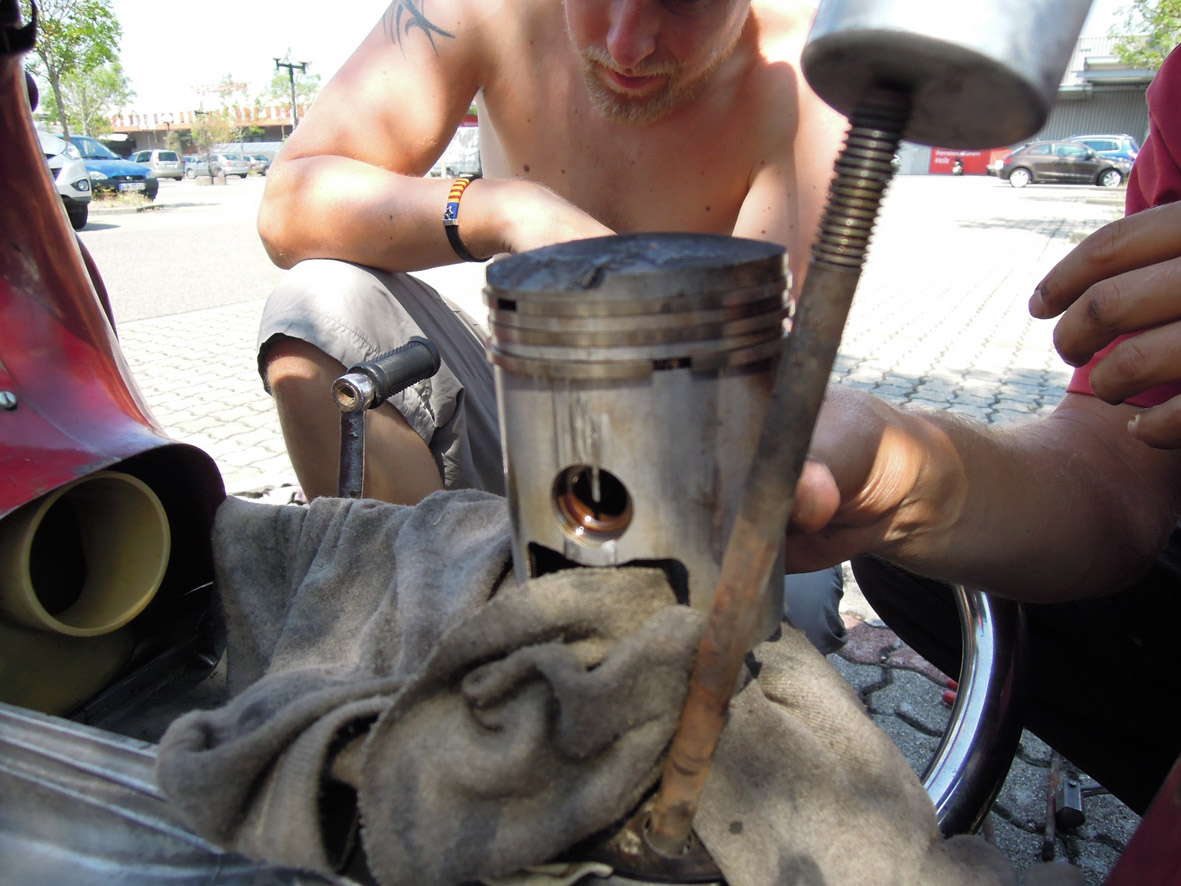 Tento den byl pro Romana poněkud špatný. Jeho motor se rozhodl vydávat hodně zvláštní zvuky. Během jízdy po dálnici mu začal zase stávkovat v podobě ztráty výkonu. Pro případ dalšího záděru jsem se rozhodli pro jízdu mimo dálnice, kde není náhlé zastavení tak nebezpečné. Německé dálnice totiž v mnoha místech postrádají krajnice a tak by Roman zůstal stát na krajní čáře. V takovém místě by neměl ani zastavit, natož tam něco opravovat. Vedlejší cesty byly často zdlouhavé. Museli jsme se tedy podívat do motoru, zjistit co se mu nelíbí. Vypadlá závlačka se mlela mezi místem a válcem. Místo, které musí být perfektně utěsněné rozedíral ocelový drát. Vytáhli jsme ji ven a přebytečný materiál obrousily. Doma bychom takový motor znovu neskládali, ale tady už nebylo co pokazit. Každý kilometr směrem k domovu byl výhrou. Doufali jsme, že to vydrží alespoň do Česka. Po složení motor stále zněl jako dieselová lokomotiva. U města Sinsheim jsme navštívili muzeum dopravních prostředků. Byli zde k vidění různé exponáty jako jsou motorky, auta, lodní motory, závodní formule, lokomotivy, i letadla zvané Concord. Měli jsme na prohlídku asi 2 hodiny. To jsme ještě netušili, že tam toho bude k vidění tolik. Na prohlídku by to chtělo celý den. Některé exponáty jsme museli zcela vypustit, kolem jiných jsme jen proběhli. Večer v 18 hodin muzeum zavřeli a my jsme pokračovali dál. Nocleh jsme tuto noc hledali těžce. Po několika marných pokusech jsme našli v GPS nějakou vodní plochu. Dostávali jsme se tam prašnou cestou přes zemědělské družstvo, kolem traktoru doprava. Dojeli jsme až k chovnému rybníku u města Nurnberg. Zhruba po hodině přijelo auto asi s majitelem. Uklidnili jsme ho, že po nás nezůstane žádný nepořádek a ráno budeme pryč. Popřál nám šťastnou cestu a odjel.